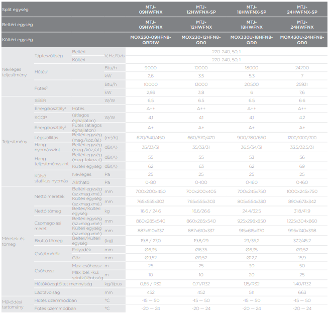A Midea MTJ-18HWFNX-SP légcsatornázható split (R32, 5,3 kW) fontos tulajdonságai: