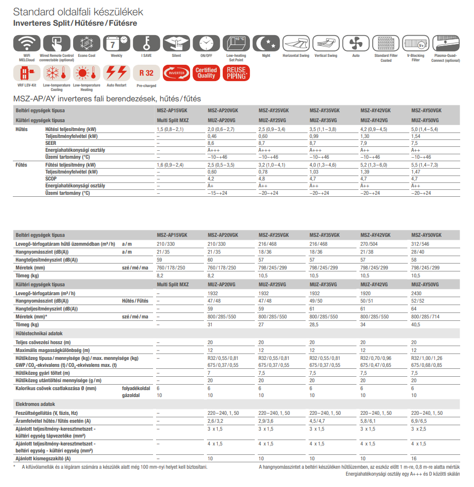 A Mitsubishi MSZ-AY35VGKP / MUZ-AY35VG Inverteres Split Klíma Plasma Quad szűrővel fontos tulajdonságai: